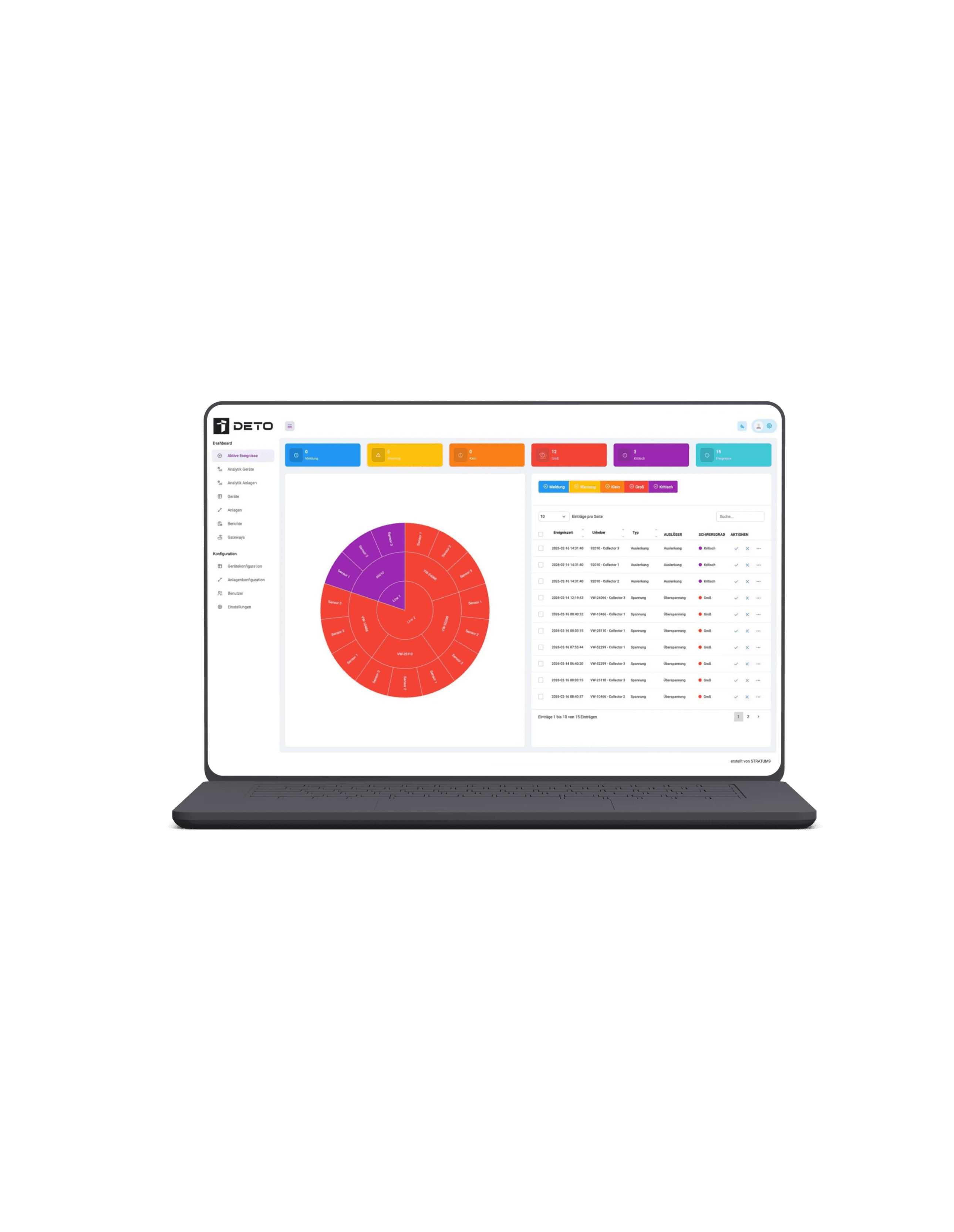 Alle relevanten Betriebs- und Zustandsdaten werden zentral über das DETO Mastergateway erfasst und gebündelt – für präzise Diagnosen, Analysen und volle Transparenz über die Performance, Auslastung und den Gesamtzustand der Anlage.